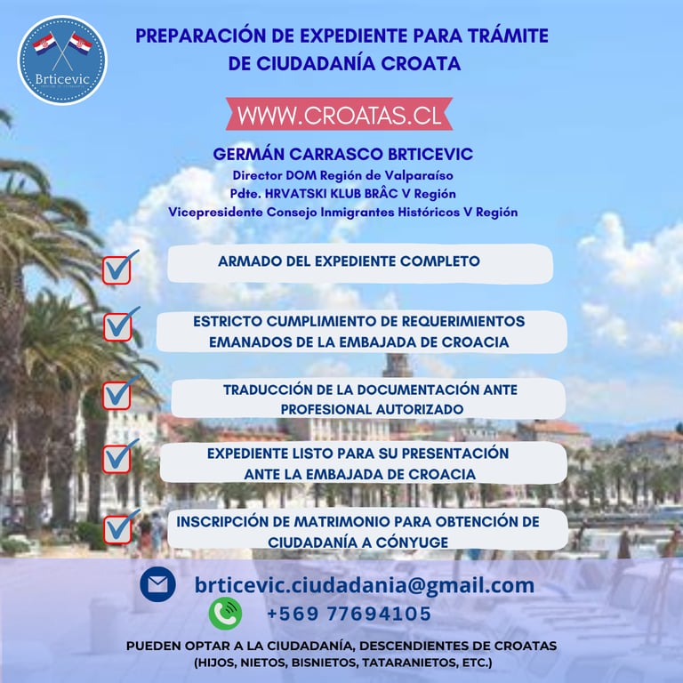 Armaré tu expediente completo en estricto cumplimiento con los requerimientos exigidos por la República de Croacia.